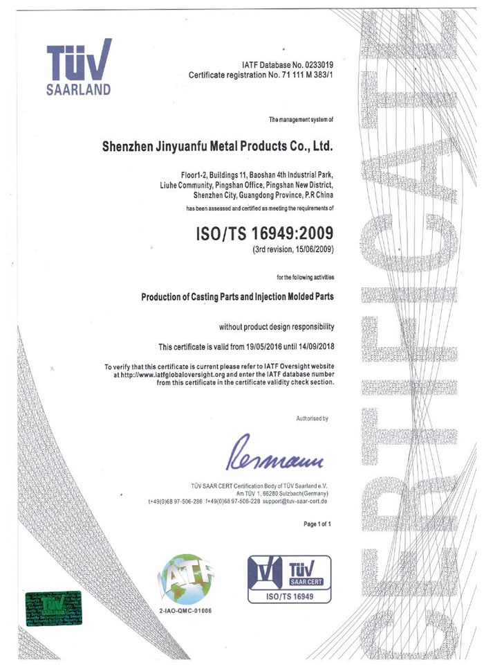 深圳市金源福五金制品有限公司成立于2003年。公司擁有8000多平方米生產廠地、開發(fā)與管理精英人才、技術專業(yè)、設備精良、交通便利、服務周全、具體設計、開發(fā)、制模、出樣、生產到成品出貨一體化模式生產廠家。已通過ISO9001:2008ISO1440/TS16949:2009國際質量體系認證。專業(yè)生產鋅合金壓鑄、鋁合金壓鑄產品、汽車配件、汽車后視鏡支架、車載導航散熱器、LED散熱器、LED燈罩、數碼電子五金結構件、家具五金裝飾件、標牌(LOGO)等五金壓鑄產品。